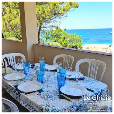 Affittiamo un appartamento estivo a Portoferraio nella splendida Isola d'Elba, con 8 posti letto e terrazza vista mare, a pochi passi dalla spiaggia de Le Ghiaie.